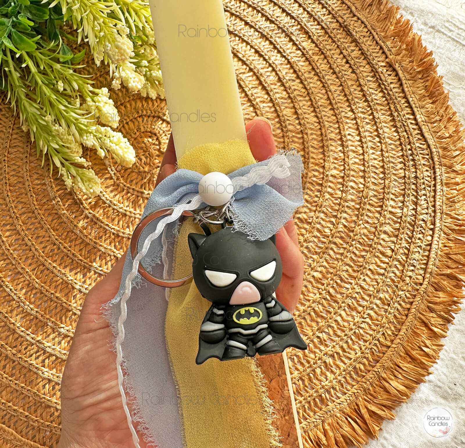 Χειροποίητη πασχαλινή αρωματική λαμπάδα για αγόρια με μπρελόκ batman.