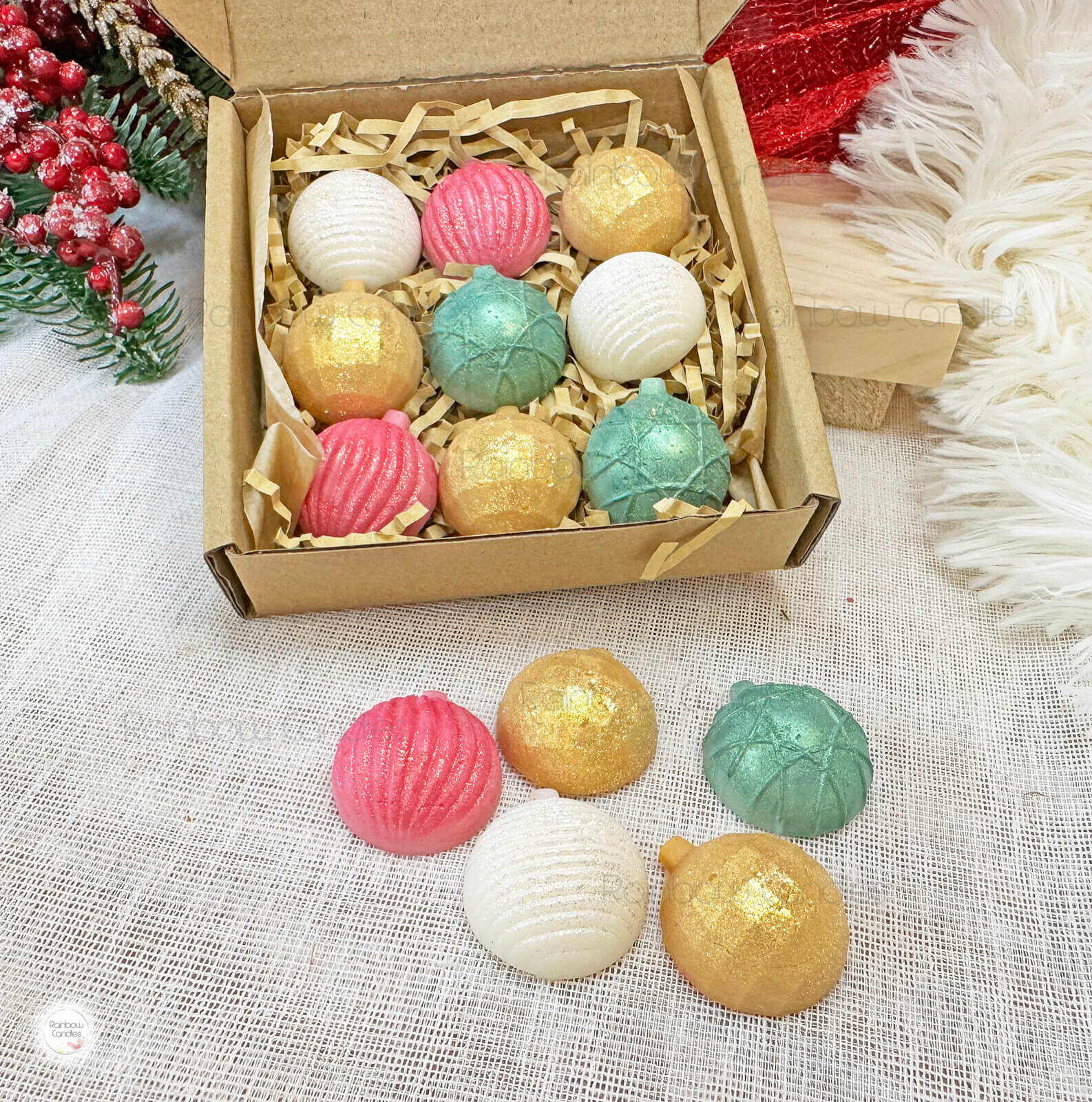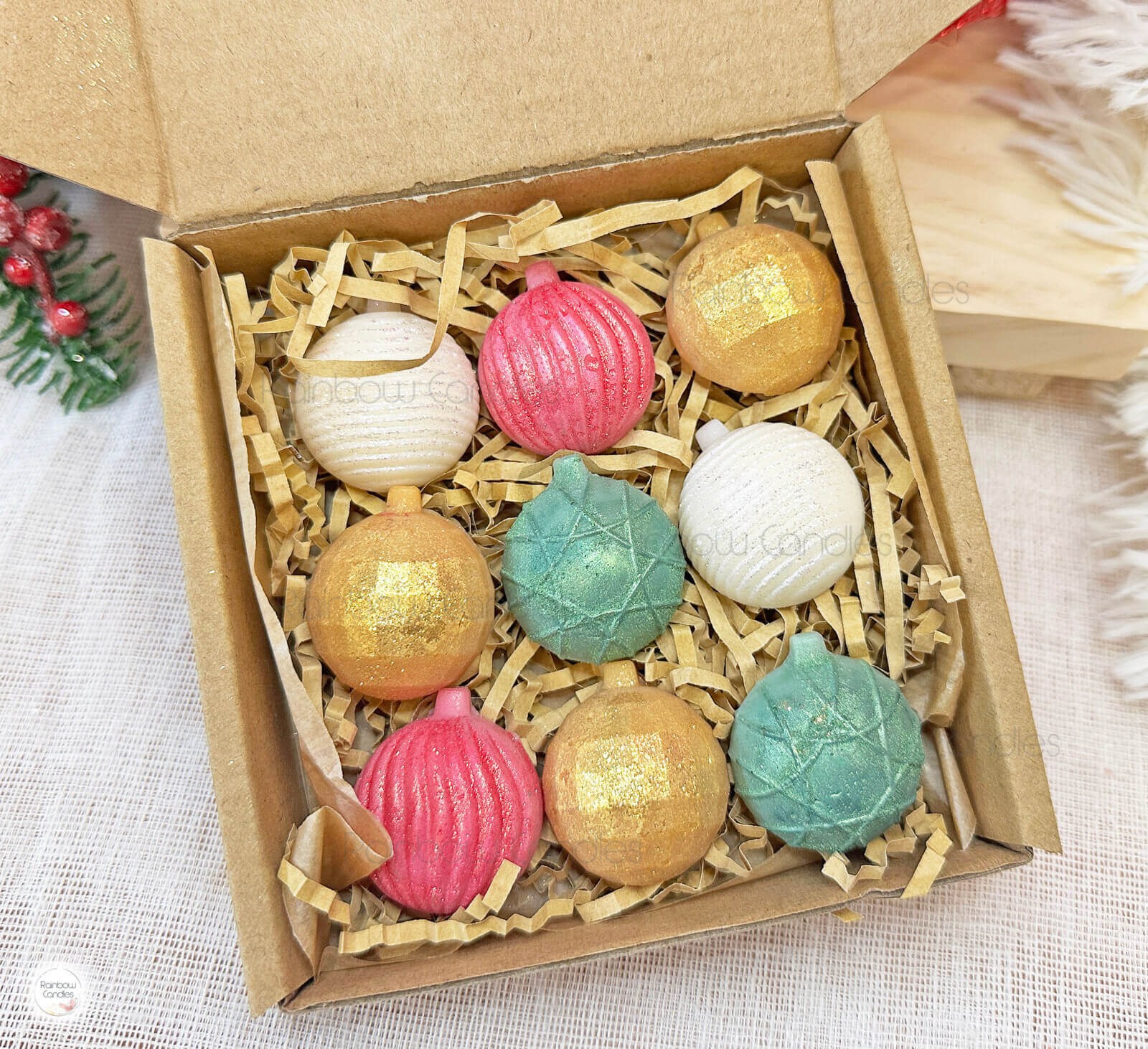 Ένα κουτί με τις ποιο μυρωδάτες χριστουγεννιάτικες μπάλες σε 80s στυλ! Από φυτικό κερί με άρωμα crystal!