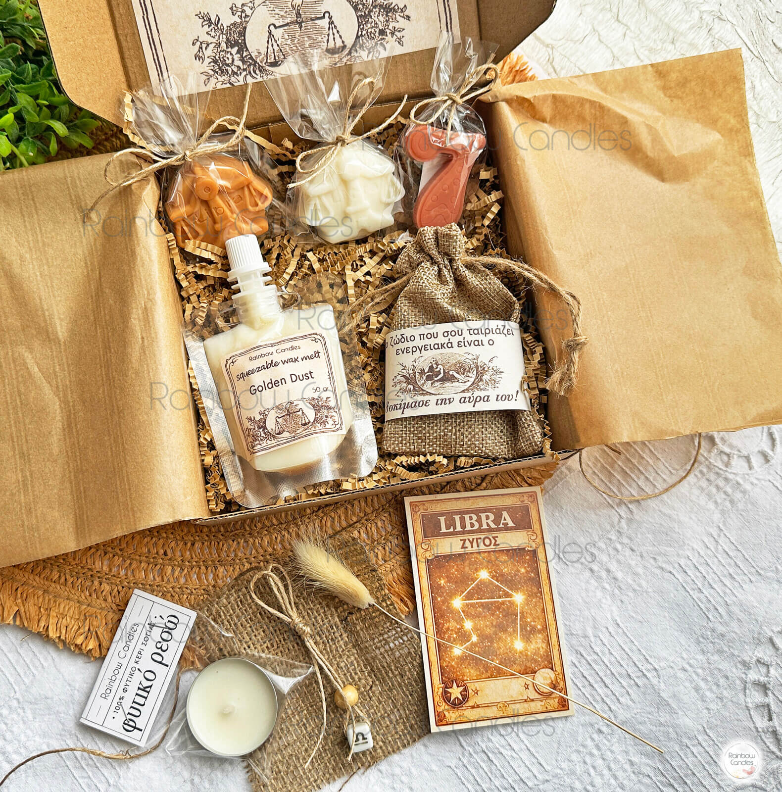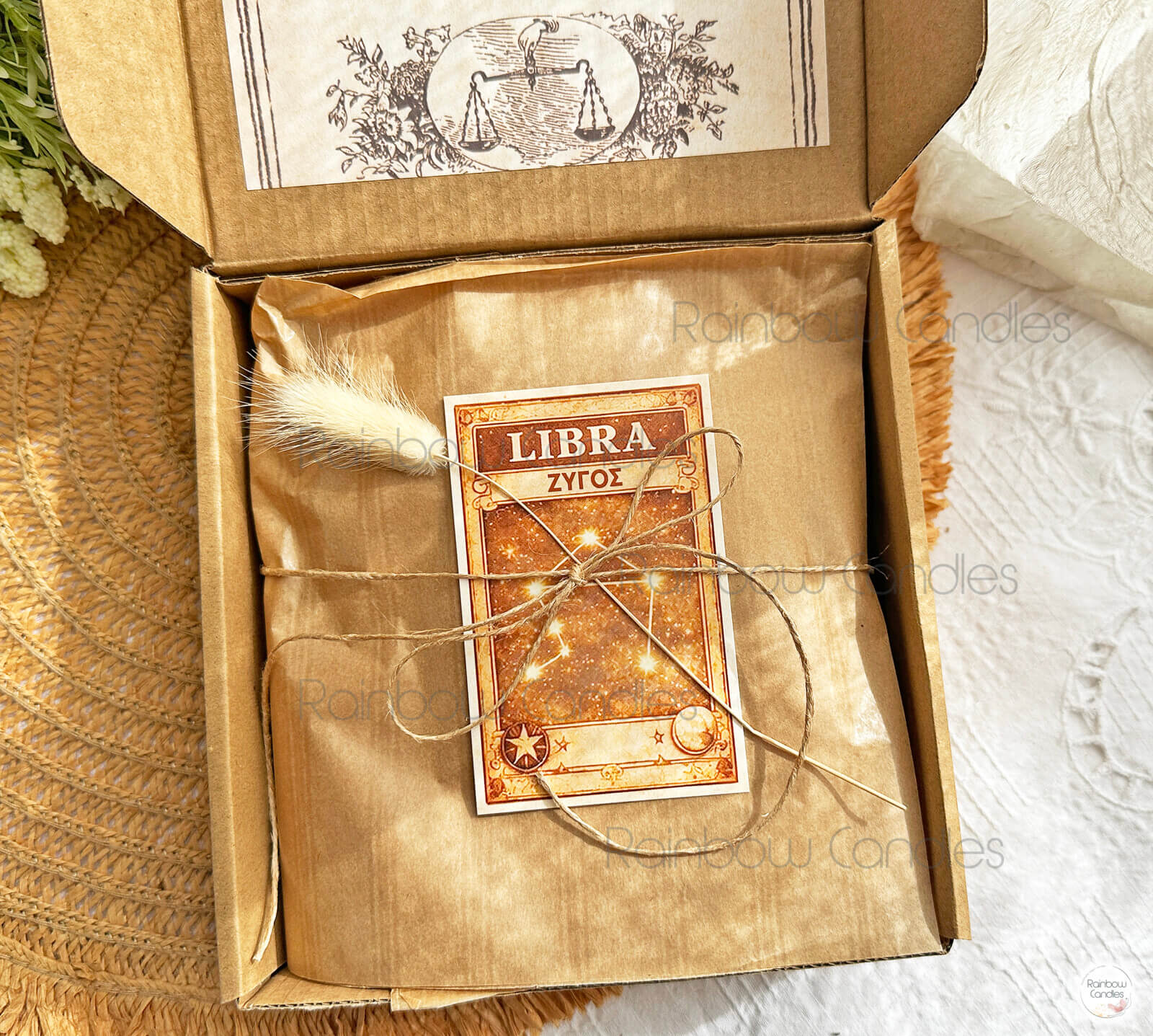 Ένα κουτί με wax melts από φυτικό κερί και ειδικά επιλεγμένα αρώματα ώστε να αντικατοπτρίζουν τον εκλεπτυσμένο, κοινωνικό και διπλωματικό χαρακτήρα του Ζυγού.