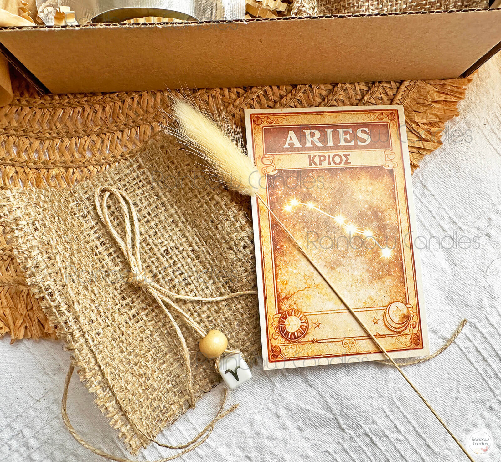 Ένα κουτί με wax melts από φυτικό κερί και ειδικά επιλεγμένα αρώματα ώστε να αντικατοπτρίζουν τον δυναμισμό και τη ζωτικότητα του Κριού.