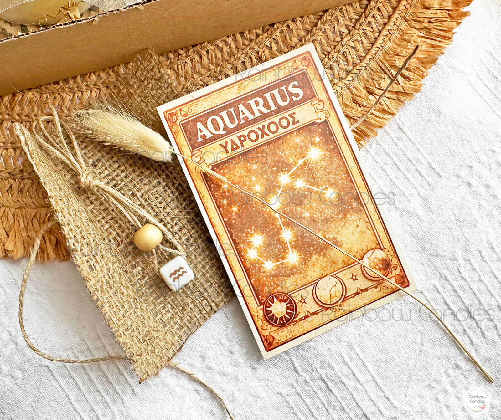 Μέσα στο κουτί θα βρεις και ένα wax melt με τον αριθμό που αντιπροσωπεύει τον Υδροχόο, όπως επίσης και ένα wax melt με άρωμα εμπνευσμένο από το ζώδιο του Δίδυμου, που ταιριάζει ενεργειακά με τον Υδροχόο!