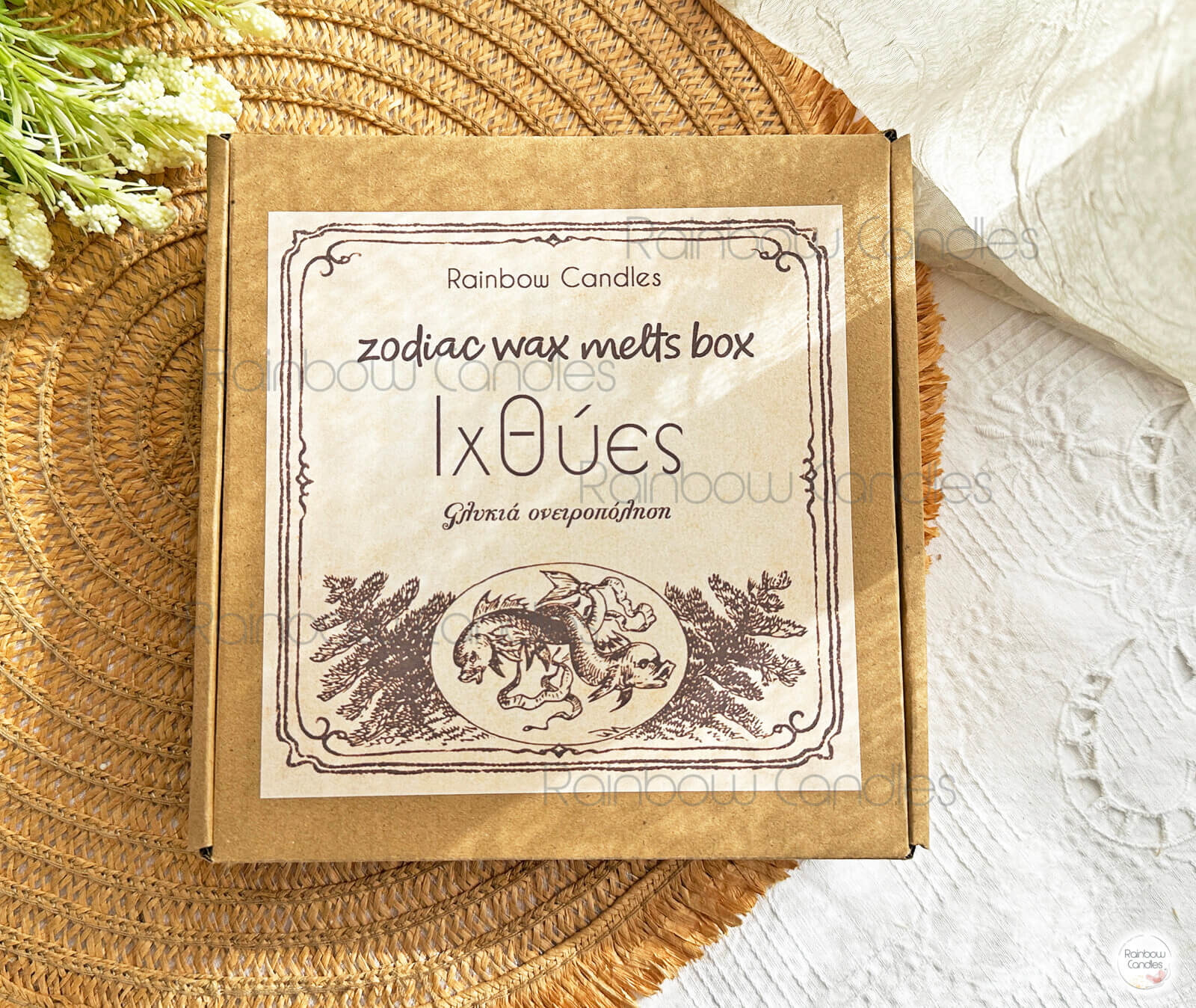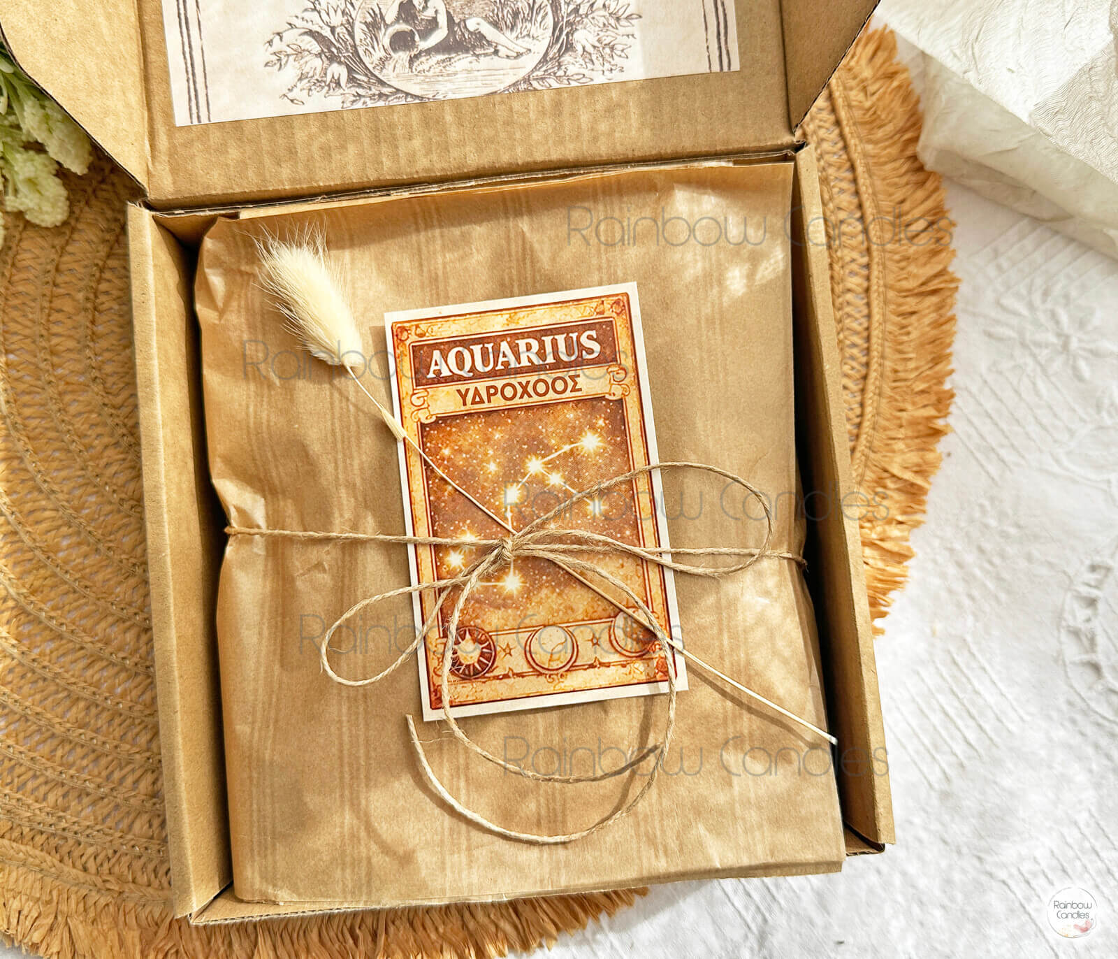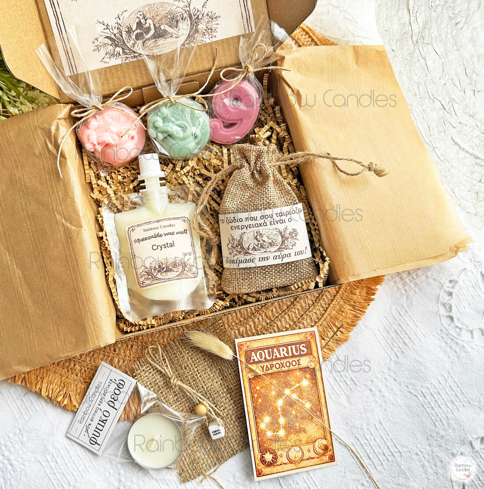 Ένα κουτί με wax melts από φυτικό κερί και ειδικά επιλεγμένα αρώματα ώστε να αντικατοπτρίζουν την ανεξάρτητη, δημιουργική και παιχνιδιάρικη φύση του Υδροχόου.