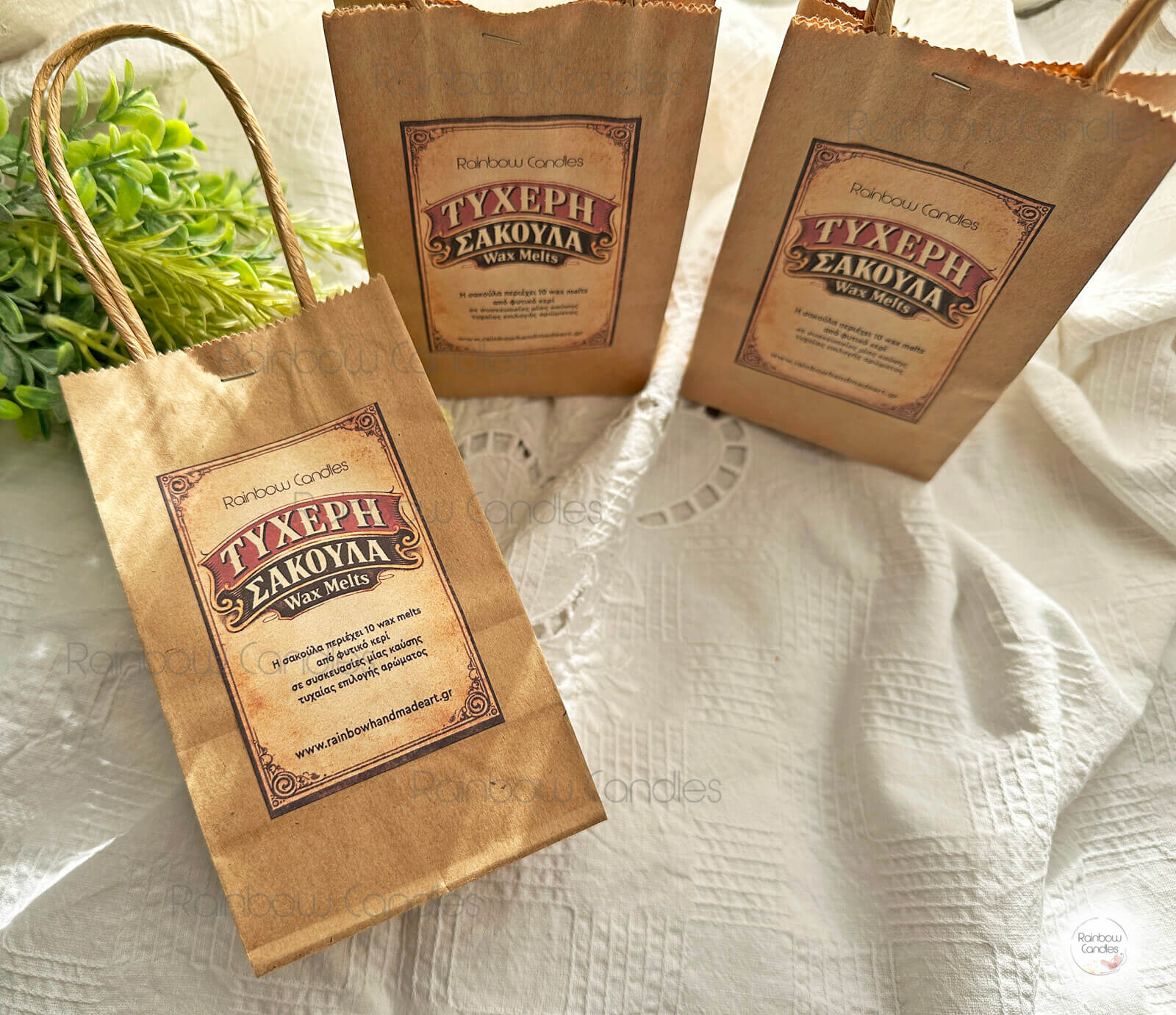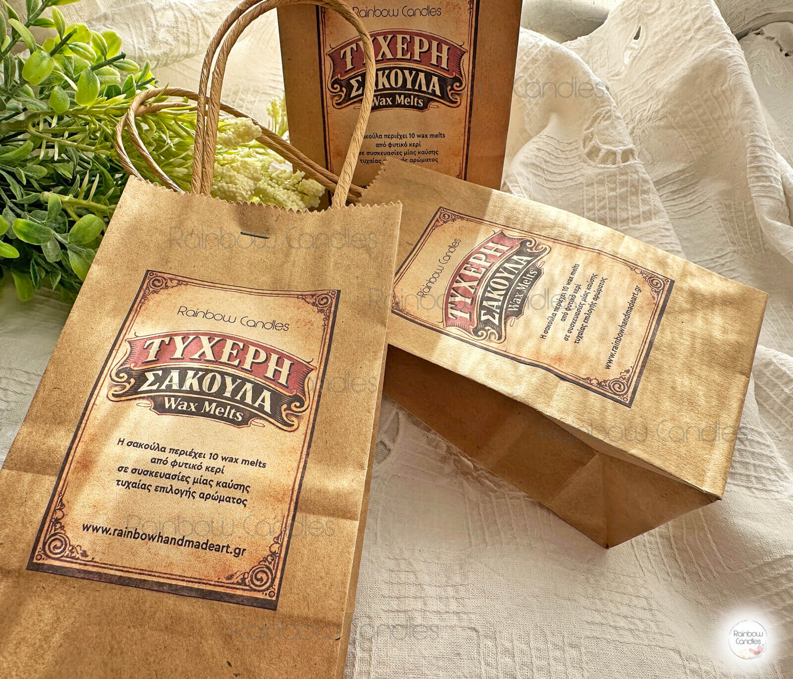• Η τυχερή σακούλα περιέχει 10 συσκευασίες wax melts από 100% φυτικό κερί σόγιας σε τυχαία επιλογή αρώματος, και έναν λαχνό που κερδίζεις επιπλέον μία, δύο ή τρεις συσκευασίες wax melts.